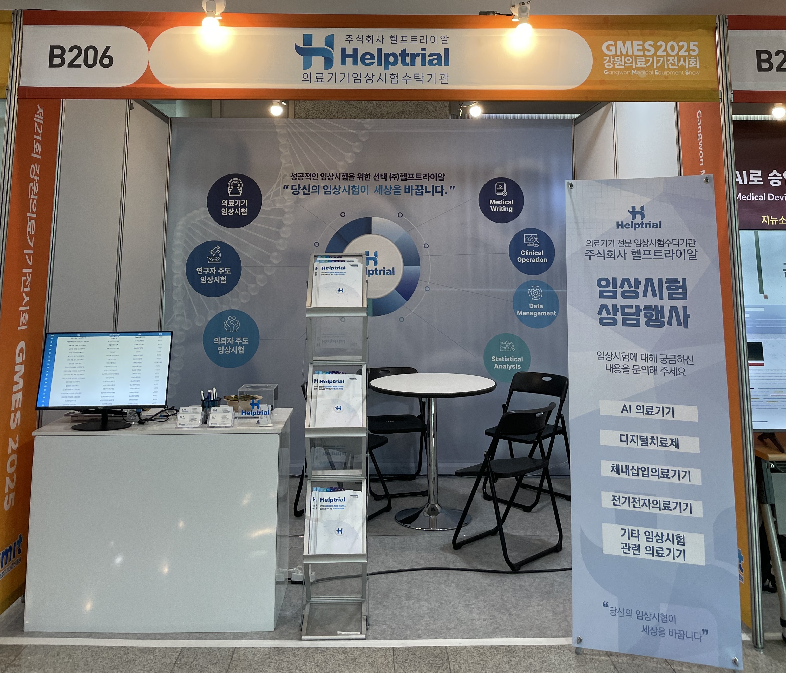 의료기기 전문 임상시험 수탁기관 ㈜헬프트라이알(대표 정영호)은 지난 9월 18일부터 19일까지 원주 의료기기종합지원센터 상설전시장에서 열린 제21회 강원의료기기전시회(GMES 2025)에 참가해 의료기기 기업들을 대상으로 임상시험 무료 상담 서비스를 진행했다.