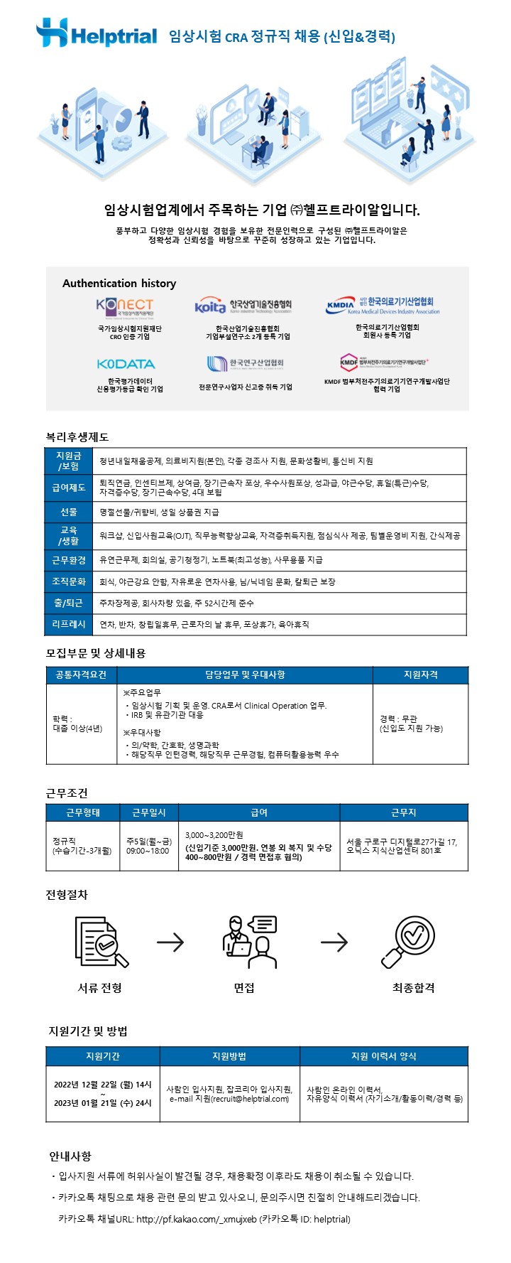 [채용완료] 임상시험 CRA 신입&경력 정규직 채용 - 사세 확장에 따른 채용