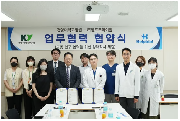 임상시험수탁기관(CRO) ㈜헬프트라이알이 최근 건양대학교병원 의료기기융합센터와 공동 연구 협력을 위한 MOU(양해각서)를 체결했다고 9일 밝혔다.