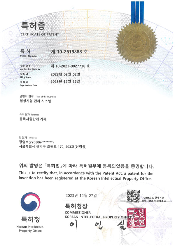 임상시험수탁기관 자율등록증 국가임상시험지원재단
