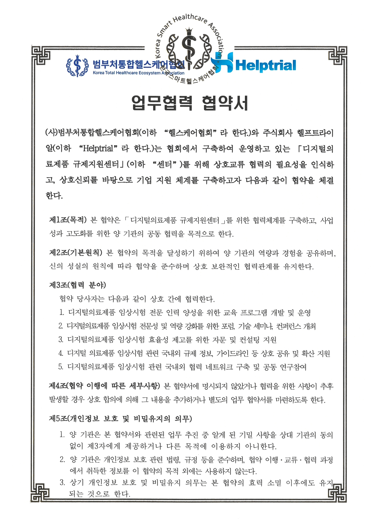 MOU 상호협력 협약서범부처통합헬스케어협회